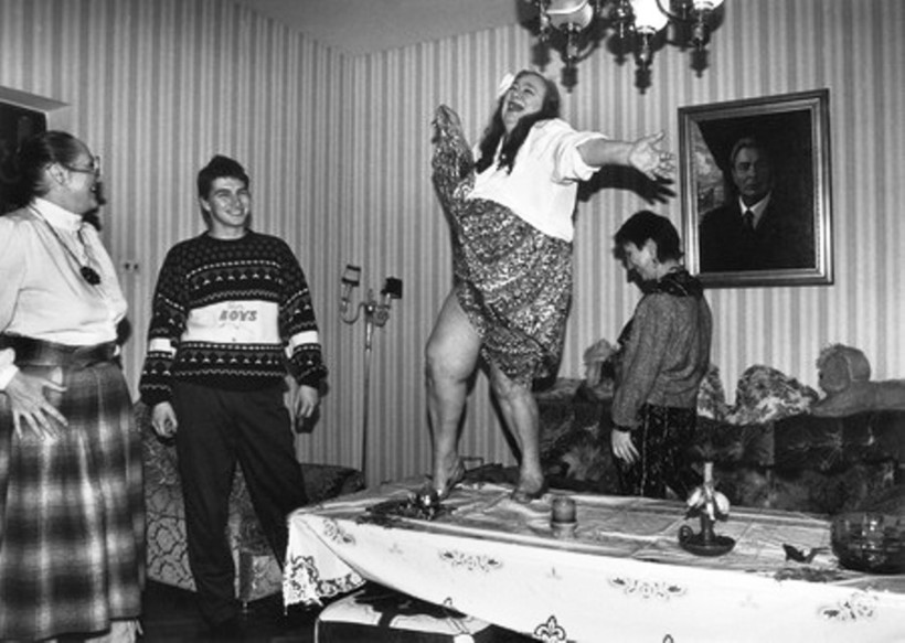 Галина Брежнева развлекается у себя дома на одном из праздников, ранние 90-е.