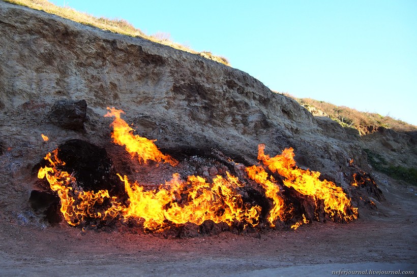 Недалеко от Баку расположена необычная гора, к которой обязательно приезжают туристы, посещающие столицу Азербайджана. А некоторые путешественники из Ирана и Индии едут в Азербайджан исключительно ради посещения этого места. Называется эта гора Янардаг, что в переводе означает «горящая гора». Гора действительно горит, самым настоящим огнем.