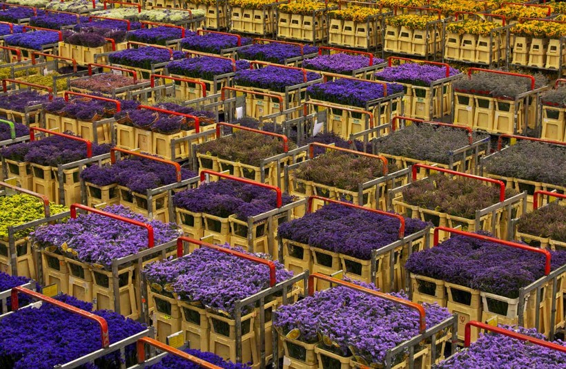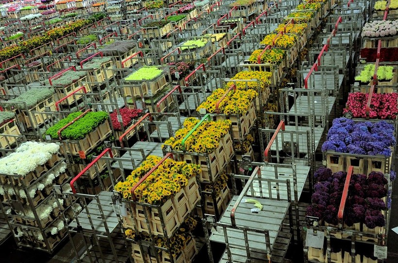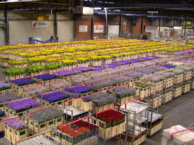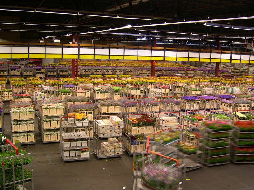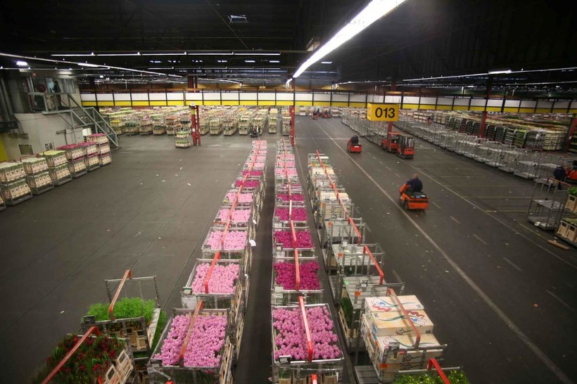 В ночь накануне аукциона цветы готовят к продаже — упаковывают и охлаждают. К концу дня продажи все цветы раскупают, несмотря на огромные объемы.