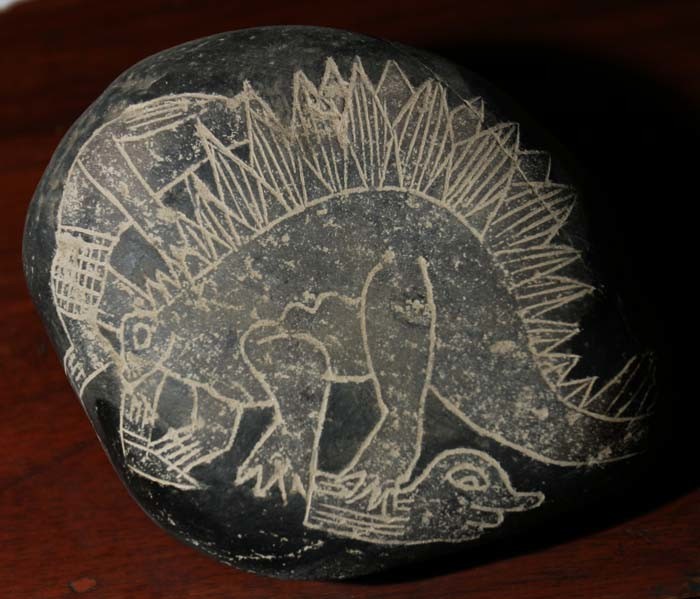 Находки с изображением динозавра были обнаружены в перуанском местечке Ика. Хотя коллекция, которую собирал доктор Кабрера, и была объявлена подделкой, все равно стоит упомянуть об этих интересных находках. К тому же убедительные доказательства современного происхождения рисунков на камнях так и не были предоставлены.
