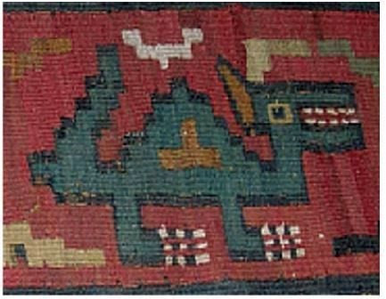 В Южной Америке, недалеко от того места, где обнаружены странные геоглифы, был найден фрагмент ткани с изображением существа, напоминающего дракона-динозавра.