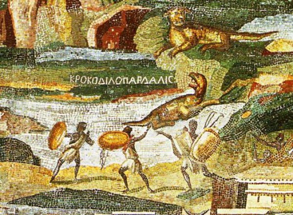 Нильская мозаика или Палестринская мозаика, датированная I веком до нашей эры. Она содержит сцены из жизни Египта эпохи Птолемеев, а животные, изображенные на ней, многим напоминают древних вымерших рептилий. К одному из существ даже прилагается надпись на греческом — KROKODILOPARDALIS, что буквально означает Крокодилолеопард.