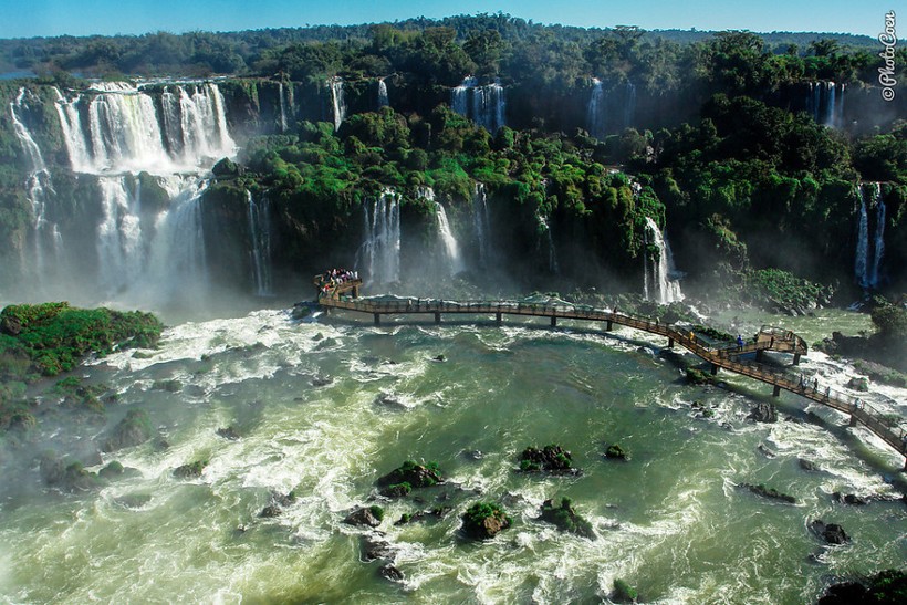 257 многоуровневых водопадов впадают в реку Парана, охватывающую границу между Аргентиной и Бразилией. Индейцы гуарани дали этим водопадам название Игуасу, что означает «большие воды». Отсюда можно увидеть самый свирепый из всех водопадов — «Горло Дьявола».
