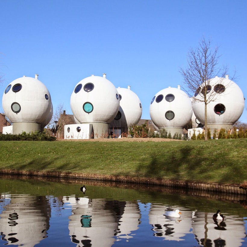В нидерландском городе Хертогенбос есть один необычный район — Болвонинген (Bolwoningen). Дело в том, что все его дома — круглые! Непривычная форма зданий напоминает больше жилища инопланетян, чем обычные дома. Однако никаких пришельцев здесь нет, в этих сферах живут люди.