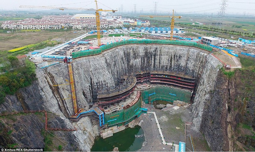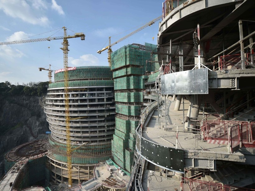 В Шанхае завершается строительство отеля Songjiang InterContinental. Он знаменит тем, что большая его часть находится под землей. Здание строят в огромной яме бывшего карьера.
