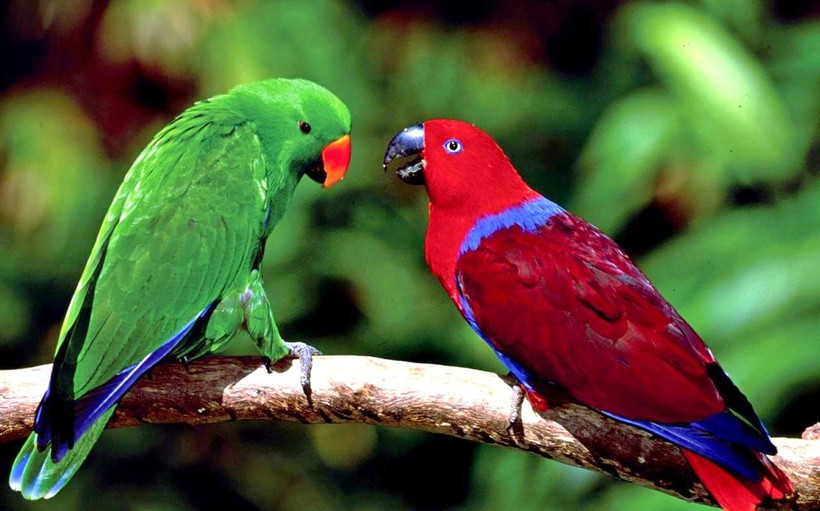 Различия во внешнем виде между самцами и самками — это довольно распространенное явление в мире пернатых. Самцы, как правило, украшены более привлекательным оперением, да и дополнительные хохолки и шикарные хвосты среди них не редкость. Хотя в целом семейное сходство прослеживается достаточно четко. Но благородные зелено-красные попугаи, обитающие в Австралии и на прилегающих островах, превзошли всех своих сородичей. Они настолько не похожи друг на друга, что орнитологи долгое время считали их разными видами.