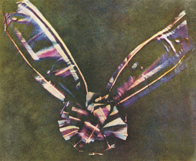 Первый цветной снимок «Ленточка из шотландки», 1861 год. Автор Джеймс Клерк Максвелл.