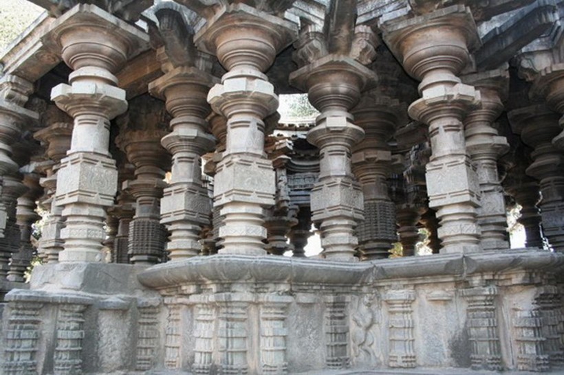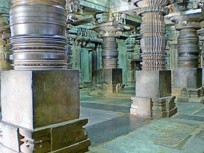 Больше всего в этом храмовом комплексе поражают своим видом многочисленные колонны. Они словно выточены из камня на гигантском токарном станке. Невозможно представить, как такую сложную обработку можно выполнить в X веке силами пусть и высокоразвитой, но все же аграрной средневековой цивилизации. Вручную такие архитектурные детали, с идеальной геометрией выполнить невозможно, а следов оборудования, при помощи которого можно было бы с такой точностью обработать камень, до сих пор не найдено.
