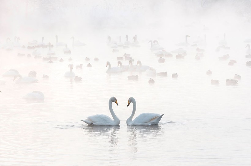 Озеро Светлое, куда прилетают на зимовку лебеди и утки. Даже в -40 градусов озеро никогда не замерзает, Алтай