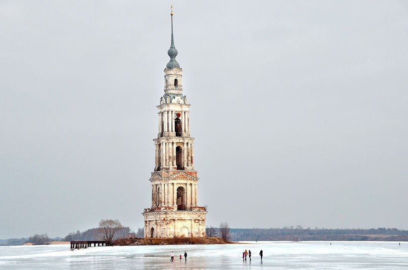 Калязинская колокольня и замерзшее водохранилище, Тверская область