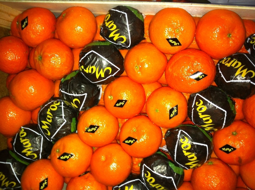 Под маркой марокканских мандаринов чаще всего продают клементины, а не мандарины. Это гибрид мандарина и апельсина-королька. Марокканские фрукты, помимо характерной ромбовидной наклейки черного цвета, имеют небольшие размеры и ярко-оранжевый, очень насыщенный цвет. Эти плоды сладкие и сочные, имеют тонкую пористую кожуру, а семечки в них, как правило, отсутствуют, либо содержатся в незначительном количестве. Марокканские клементины очень хорошо хранятся, около месяца.