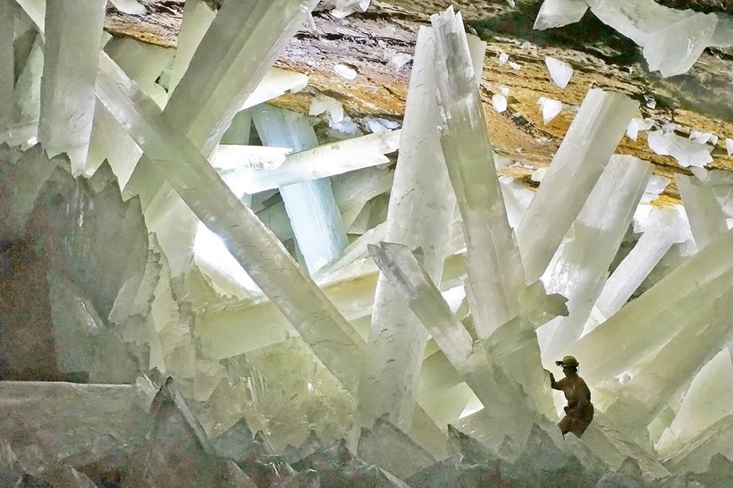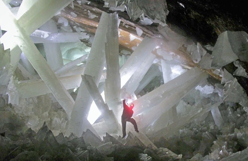 Эта удивительная Пещера кристаллов находится посреди мексиканской пустыни, в горе Найка. Знаменита она тем, что именно здесь расположены гигантские кристаллы селенита, одной из форм гипса. Пещера заполнена сотнями полупрозрачных кристаллов, длиной до 15 метров, а их диаметр иногда превышает 1 метр. По этому показателю они не имеют аналогов на планете.