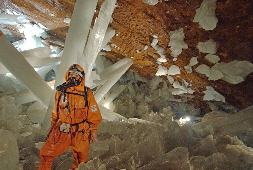 Другим немаловажным фактором послужила полная изоляция пещеры от окружающего мира. На протяжении тысячелетий здесь поддерживалась стабильная температура и влажность воздуха, без каких-либо колебаний. Химический состав воды и воздуха также оставался неизменен, что и привело к безостановочному росту таких впечатляющих кристаллов, размеры которых ограничены только стенами пещеры.