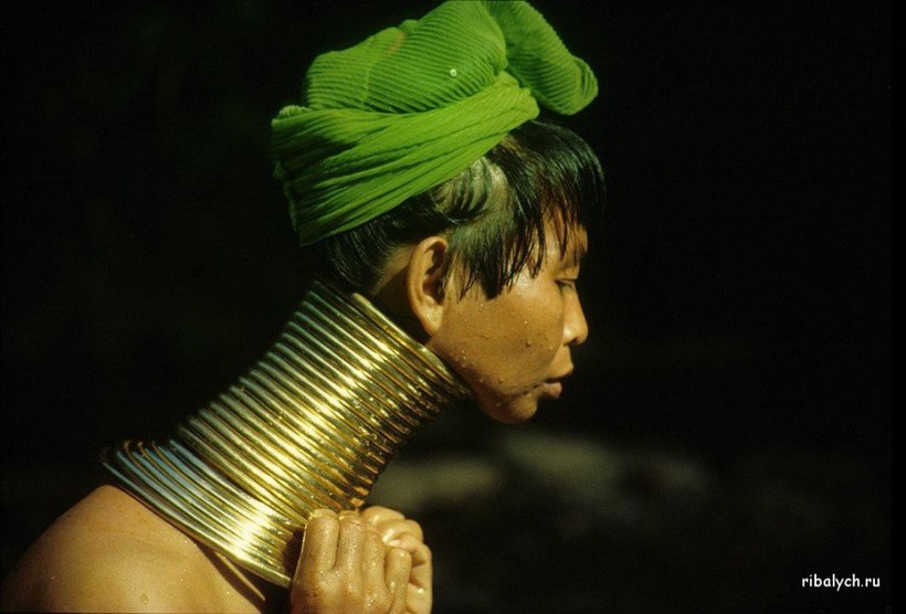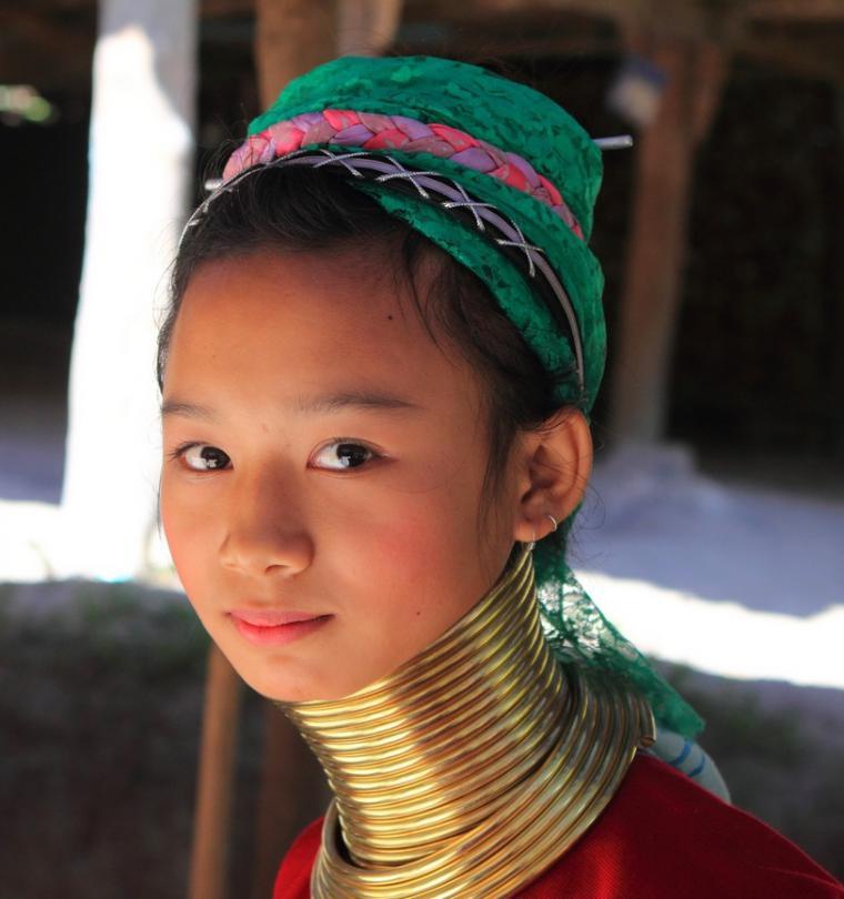 В высокогорных районах Юго-Восточной Азии проживает интересный народ падаунг (или каян). Девочки падаунг с 5-летнего возраста носят на шее медные спирали. Сначала на шею надевают спираль из шесть колец, а затем ежегодно их количество увеличивают на одно. К моменту замужества число колец достигает своего максимума, а после свадьбы их, как правило, не добавляют. Шея женщины при этом вытягивается, что приводит иногда к увеличению ее длины до 40 сантиметров. Из-за экзотического внешнего вида их стали называть женщины-жирафы, а районы их проживания очень популярны у туристов.