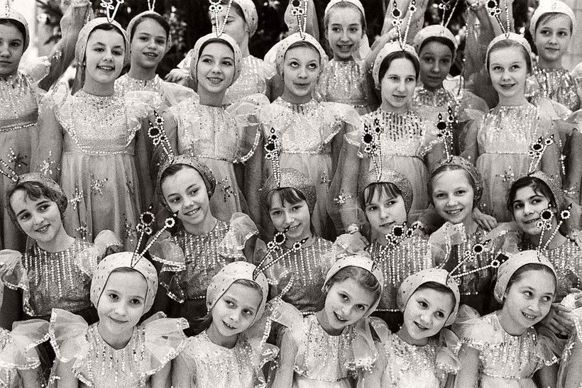 Дед Мороз и Снегурочка водят хоровод в Кремлевском дворце, Москва, 1977 г.