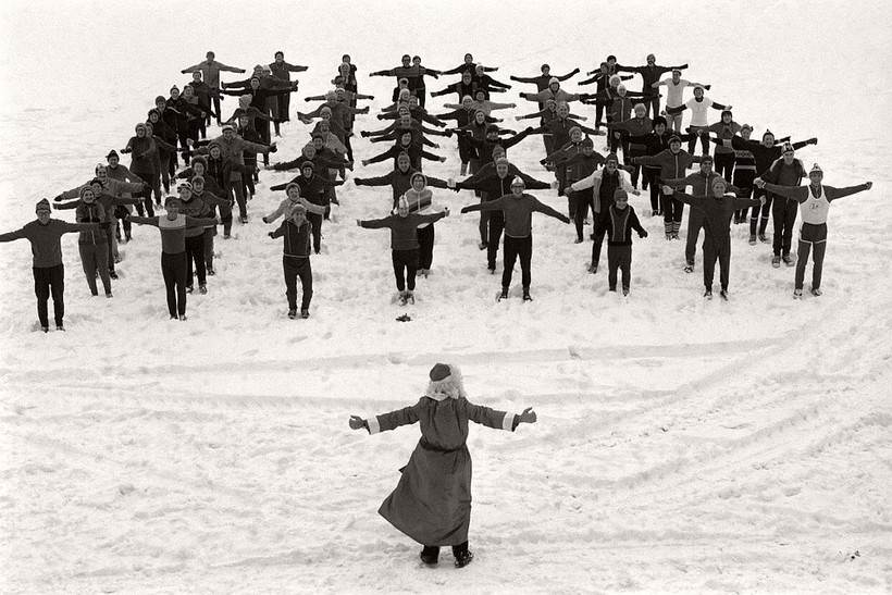 Дед Мороз проводит урок физкультуры в Москве, 1985 г.
