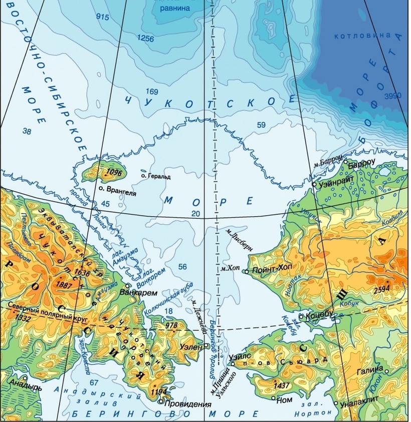 Фауна морских млекопитающих, обитающих в прибрежных водах и на побережье, представлена ластоногими: тихоокеанский морж, кольчатая нерпа и лахтак (морской заяц). Последние два вида составляют основу рациона белого медведя — крупнейшего хищника Арктики.