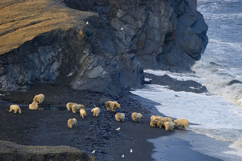 На острове Врангеля одни из самых суровых условий жизни во всем арктическом регионе. Теплое дыхание Гольфстрима не в силах пробиться так далеко на восток, и заповедник остается одним из немногих мест в акватории Арктики, где ледяной покров держится большую часть года. Льды очень важны для выживания белых медведей. Дело в том, что успешное выращивание потомства целиком зависит от того, сможет ли медведица добыть достаточное количество тюленей. Медведи, как правило, охотятся на льду, поджидая ластоногих у дыхательных лунок. Стремительное таяние льдов Арктики, а также удлиняющееся лето лишают белых медведей возможности добывать пищу в нужном количестве. Поэтому эти заповедные земли на сегодняшний день являются местом процветания белых медведей.