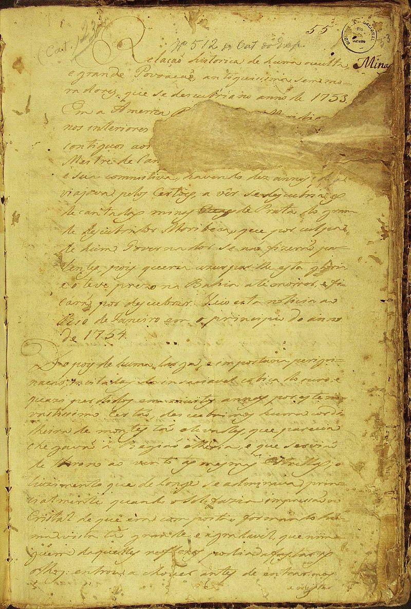 Рукопись является довольно подробным отчетом о путешествии португальской экспедиции бандейрантов, охотников за индейцами и сокровищами, середины XVIII века. Документ носит название «Историческая реляция о неведомом и большом поселении, древнейшем, без жителей, кое было открыто в год 1753» (порт. Relação histórica de uma occulta e grande povoação antiquissima sem moradores, que se descobriu no anno de 1753). Описание похода вглубь джунглей сделано с большой правдоподобностью, и его подлинность не вызывает у большинства исследователей сомнений. На 10 страницах текста, написанного в форме письма, его автор дает детальное описание путешествия, а также самого города. К сожалению, рукопись находится не в первозданном виде, некоторая часть текста безвозвратно утеряна. Но и того, что можно прочесть, вполне достаточно для настоящей сенсации.