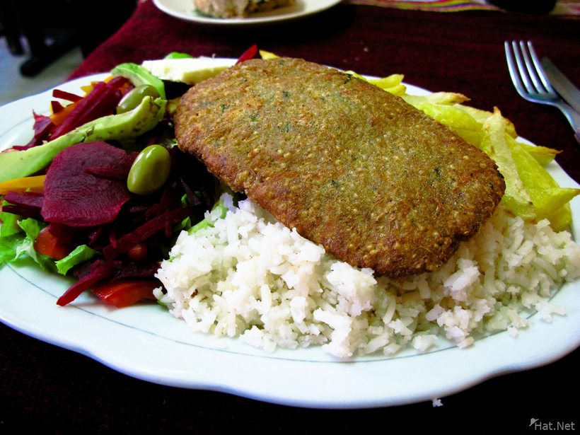 - В ресторане Manzana Magica по адресу ул. Оруро, 239 (Cl Oruro 239) подают вкусные вегетарианские блюда. Здесь не так много туристов. Можно попробовать бургер с квиноа (quinoa), овсом, чечевицей и другими ингредиентами и картофель фри за 9 боливиано. Целая тарелка стоит 15 - 25 боливиано. Тут подают чай из коки, хотя он и не значится в меню.
