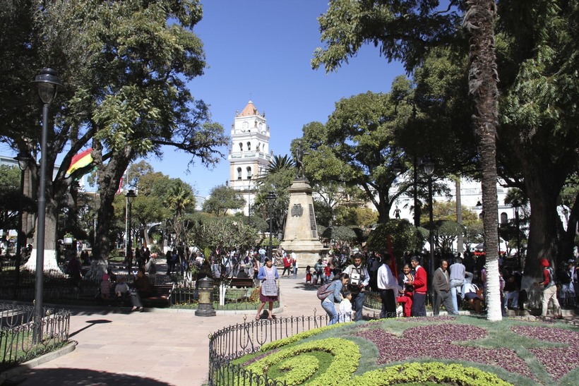 - Площадь 25 мая (Plaza 25 de Mayo) – главная площадь в городе, окруженная Кафедральным собором, городской Ратушей, рядом других колониальных зданий, а также банками, ресторанами, барами и сувенирными лавочками. На площади установлена статуя Хосе Антонио Сукре, второго президента независимой Боливии. Площадь всегда заполнена туристами, местными жителями и мальчишками, предлагающими гуляющим почистить обувь. Мне очень нравилось посидеть здесь на скамейках под пальмами, наблюдая за городской жизнью.