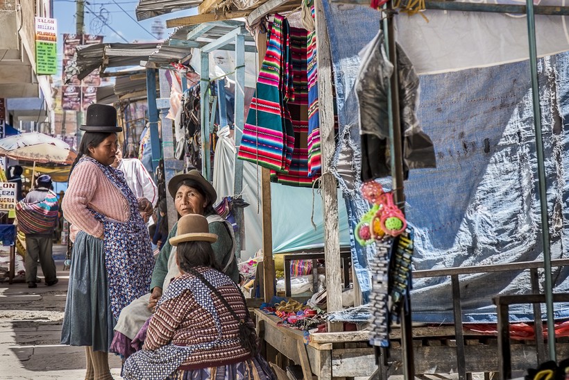 За продуктами, овощами и фруктами, рыбой и мясом я советую отправляться на Центральный рынок (Mercado Central), он находится прямо в Старом городе и отличается просто выдающейся колоритностью. Боливианки в цветных пончо продают десятки сортов картошки, кукурузы и какие-то совершенно неведомые желе, фрукты и соки. Многие (почти все) не говорят на английском и объясняться придется на пальцах, но от этого еще интереснее.