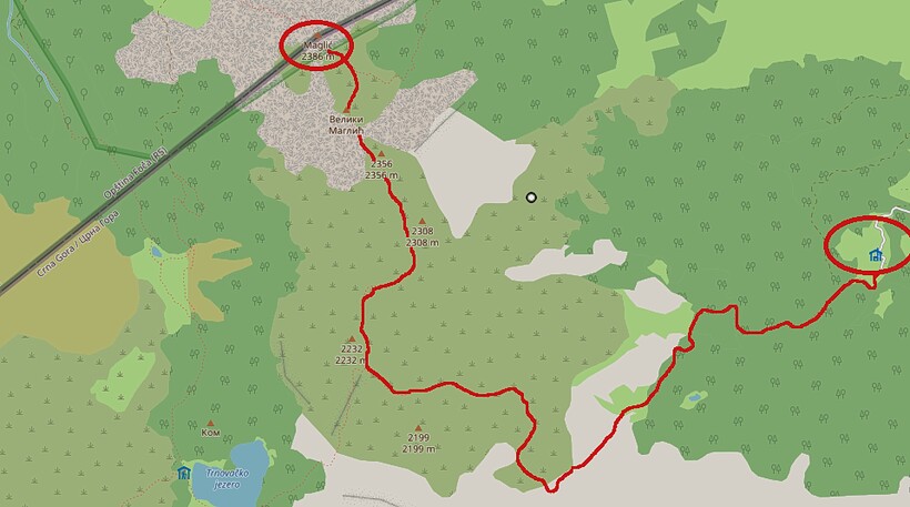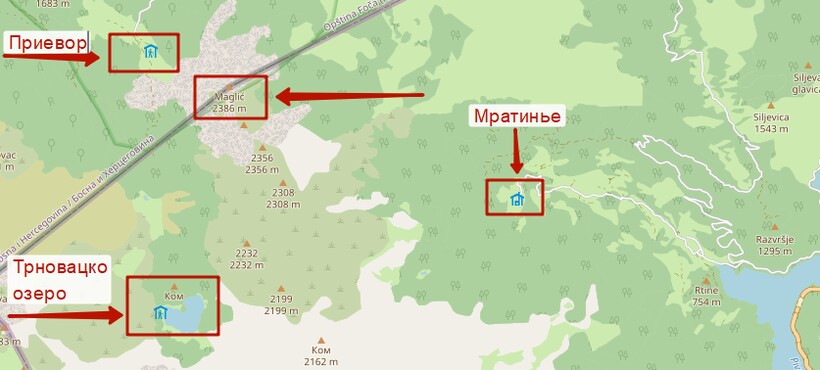 Спуститься с Маглича к Приевору можно через Трновацкое озеро. Протяженность этого маршрута составит около 6 км, путь займет 4 часа. Сначала тропа идет по пологому травянистому гребню, затем через небольшой перевал резко спускается к озеру. От водоема трек проходит через смешанный лес и выходит на плато.