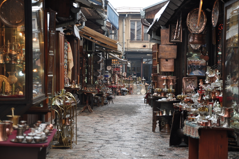 - Старый город – Башчаршия (Bascarsija). Это исторический центр города, его символ, его сокровище. Что там делать? Гулять по мощеным узким улочкам, рассматривать прилавки местных торговцев, пить кофе из джезвы с рахат-лукумом и много фотографироваться.