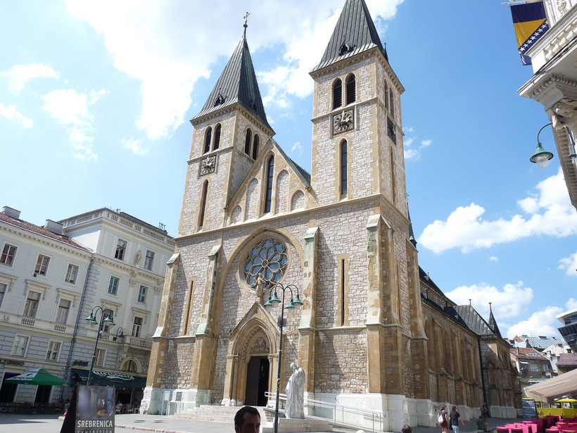 - Кафедральный собор Сердца Иисусова – главный католический храм города. Очень интересное здание, увидев которое, можно подумать, что вы в какой-нибудь из католических европейских стран, а не в Боснии и Герцеговине.