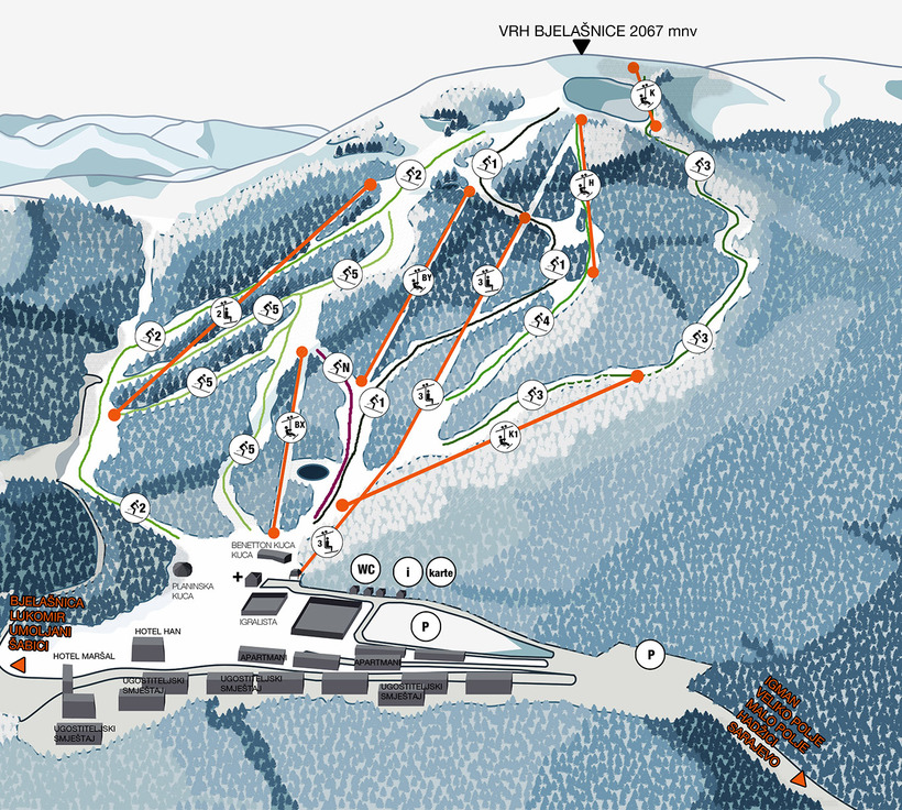 - Babin Do – Bjelasnica – 8 трасс разного уровня, 30 км от Сараево. Ски-пасс на неделю 90 евро (180 КМ).