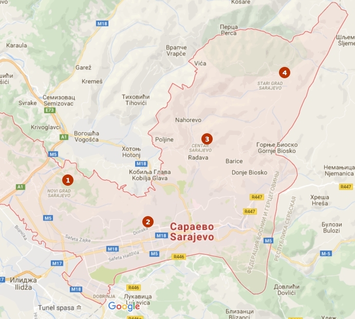 Сараево можно разделить на 4 основных части, в каждой из которой много так называемых районов.