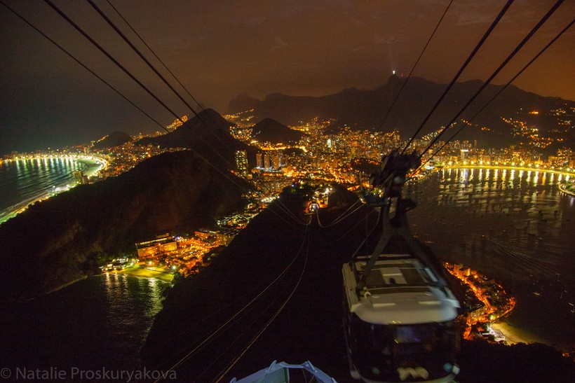 Затем мы поднялись за 11 евро на вершину Сахарной головы (Pão de Açúcar). Длится это путешествие 2 минуты и 40 секунд. Обратно вас привезут только до горы Урка (Urca), если уже будет поздно и трекинг назад будет закрыт, то чтобы добраться до подножия, нужно будет заплатить 5,5 евро (20 реалов). Для тех, кто боится высоты, совет: ничего не кушать перед поездкой.