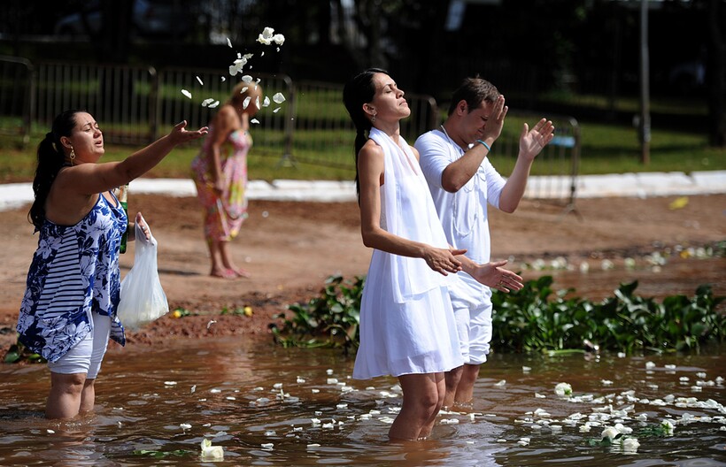 Большинство бразильцев — христиане, они являются прихожанами католической церкви. Они достаточно религиозны, отмечают церковные праздники и посещают службы. Но также в стране распространены и различные народные верования — бразильцы вызывают духов во время спиритических сеансов, делают жертвоприношения богам, совершать ритуалы защиты от злых духов.