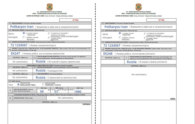 ЭТО ВАЖНО. Миграционная карта состоит из двух страниц. Одну вам необходимо отдать таможеннику, а вторую сохранить у себя. Ее вы отдадите при выезде из страны.