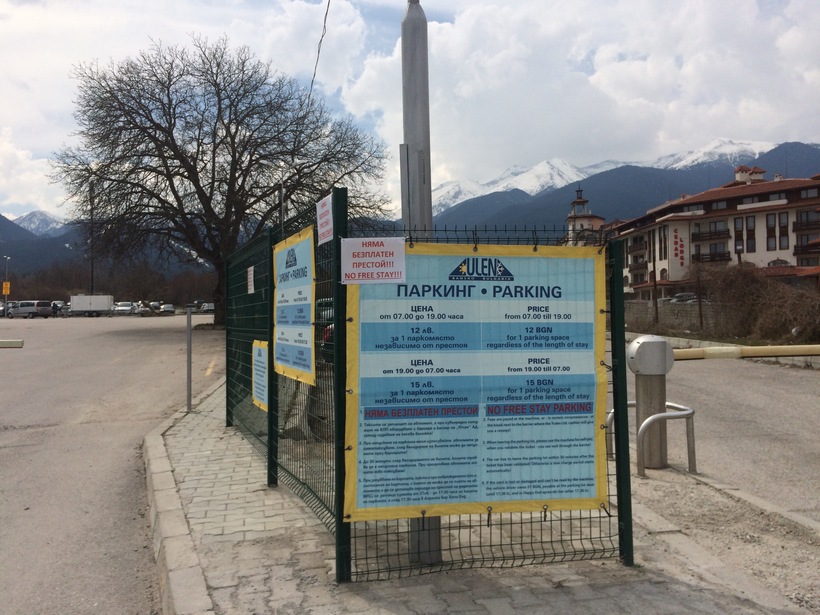 Рядом с подъемниками в Банско есть огромный паркинг.