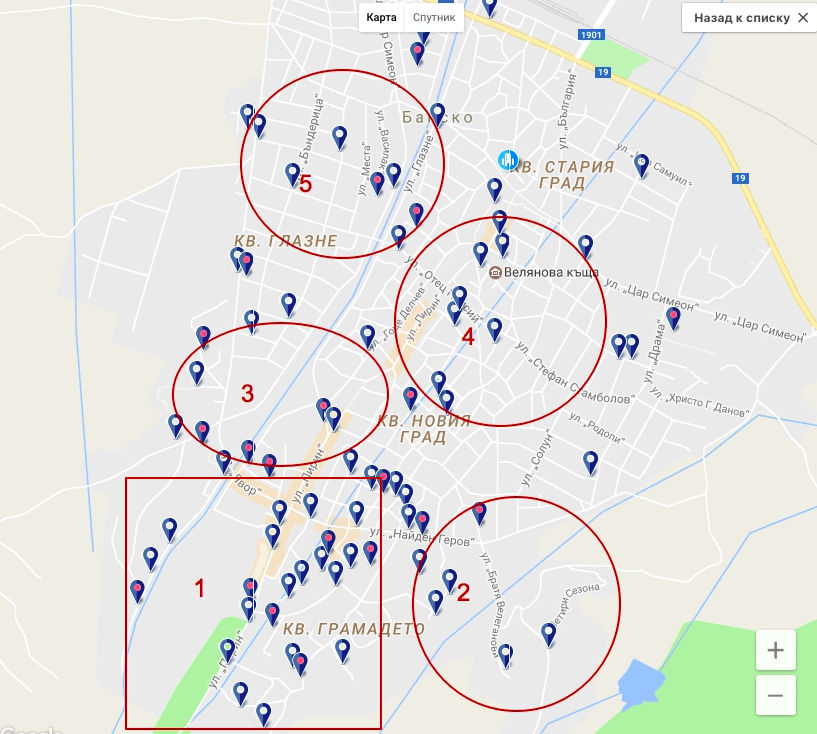 Из данного района дорога до подъемника пешком займет примерно 15 минут, много отелей и апартаментов. Здесь жили и мы. По пути также много супермаркетов и ресторанов. Цены здесь значительно ниже, чем в районе под цифрой 1. В среднем номер стоить 30 EUR в сутки, а в не сезон даже 10 EUR. Рядом с отелями есть бесплатные парковки. Однако не всегда вид из окон выходит на горы. В Банско полно недостроек.