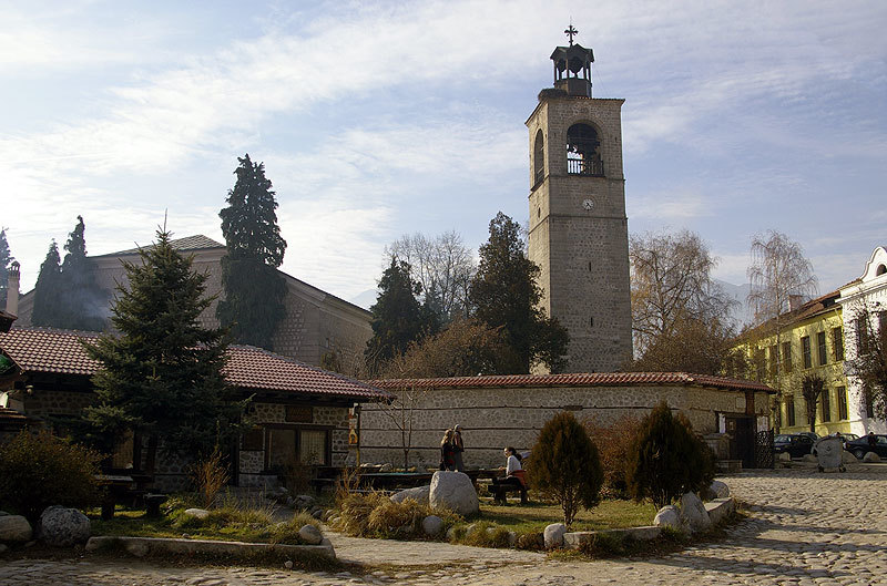 Старая часть города. Здесь находится центральная площадь, на которой расположена церковь Святой Троицы. Дома в Банско отапливаются дровами и углем, сами сделаны из камней, так как здесь этого природного материала буквально на каждом шагу. Несмотря на возраст построек, в апартаментах и отелях очень уютно и довольно неплохой ремонт. Но техника, как правило, со времен этого ремонта и вся одной фирмы от холодильника до чайника и телевизора.Центральная улица Пирин от подножья гор направляется вниз к центральной площади. В этом направлении идти очень легко, а вот обратно посложнее. В целом, на центральной улице не очень шумно, разве что вблизи клубов и баров. Цены на жилье в этом районе разнятся. Очень много дешевых гостевых домов.