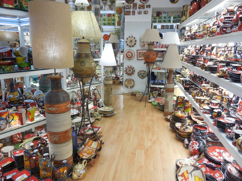 Стоимость: Цены на мелкие керамические изделия в магазине на фото ниже начинаются от 5 EUR, а большой шикарный светильник, заставит раскошелиться, т. к. их стоимость от 150 EUR и больше.