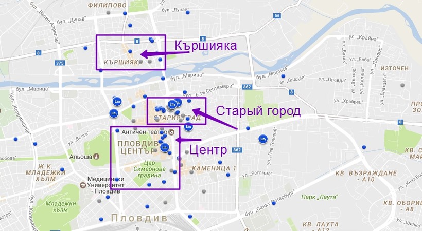 Плюс к многочисленным музеям и ресторанам болгарской и итальянской кухни в Пловдиве есть несколько казино и даже аквапарк. Ниже вы увидите их на карте: