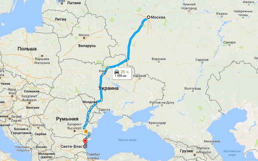 Расстояние от Москвы до Святого Власа составляет около 2000 километров.