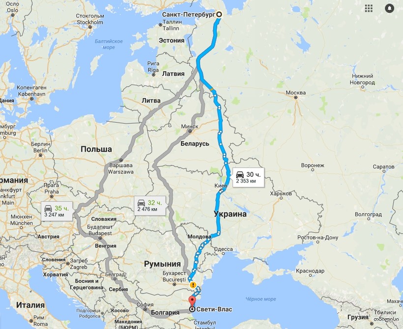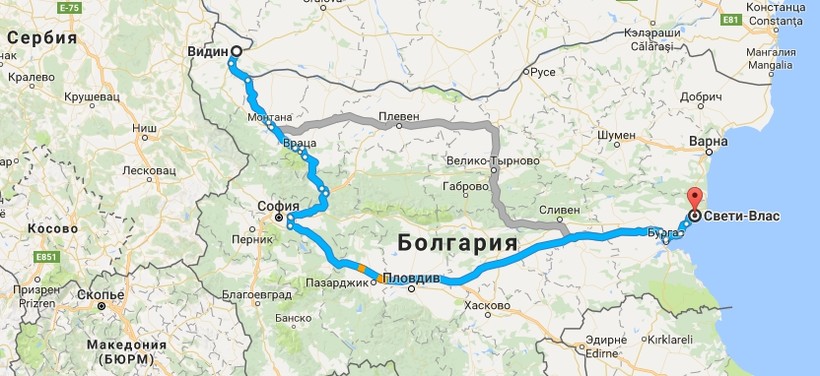 Не уверена, что это самый удачный способ добраться до Болгарии, поскольку прохождение границ может увеличить поездку с 25 часов до бесконечности. Автобус едет до автовокзала Бургаса, но проезжает через Святой Влас, где делает две остановки.