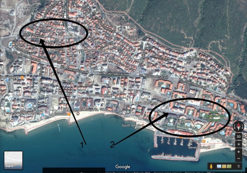 Святой Влас — совсем небольшой городок, в чем можно убедиться, взглянув на карту. Однако он предлагает богатый выбор отелей и апартаментов. В основном это отели категории 3 и 4 звезды. Но есть и несколько вариантов максимальной звездности. Сравнить цены на проживание можно здесь, а забронировать понравившийся номер проще всего на «Букинге».