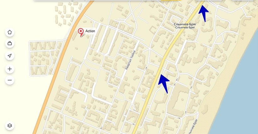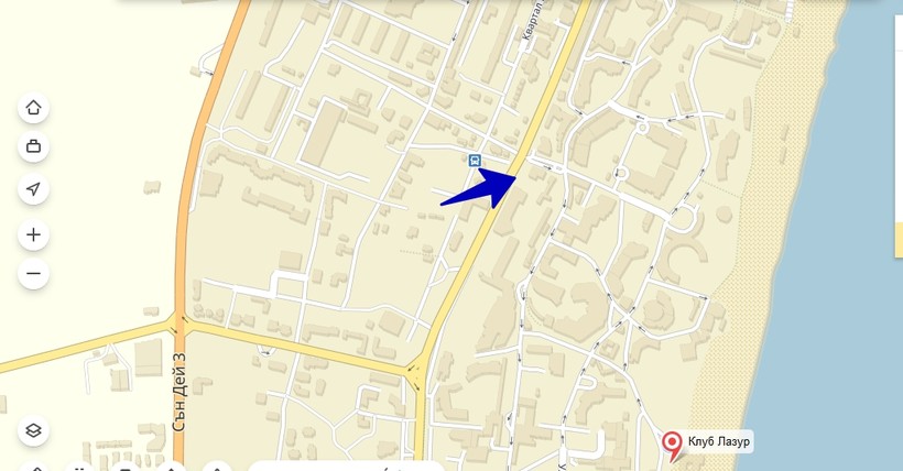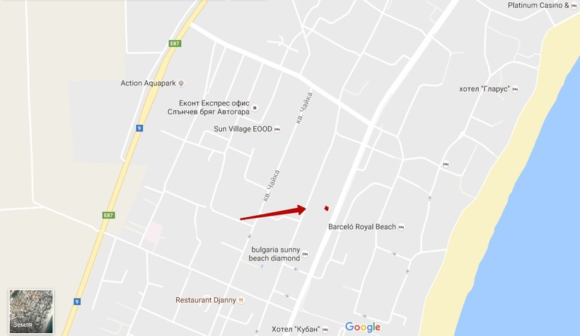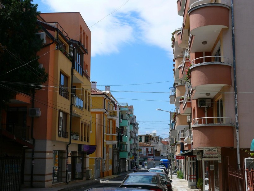 Отелей здесь практически нет. Несмотря на то, что Солнечный Берег — крайне тусовочное место. В этом районе располагаются дома, школы и детские сады, где обитают немногочисленные коренные жители этого курорта. Их немного, но они есть. Тут можно найти самые дешёвые продуктовые и хозяйственные магазины, вещевые рынки и маленькие кафешки, в которых сидят только местные. Кстати, любители совсем бюджетного отдыха при желании могут договориться с хозяином и снять комнату (не отдельную квартиру) за 5-7 € (10–15 левов) в сутки. Это можно сделать вот здесь. Данный способ подойдёт, конечно же, студентам и туристам-одиночкам, экономящим на жилье. Хочу посоветовать туристам не брезговать этим районом, свой колорит есть и у этих улочек. Пресытившись шумом и грохотом набережной, найдите время побродить на третьей линии, просто чтобы увидеть другой Солнечный Берег: негламурный, простой, по-настоящему болгарский.