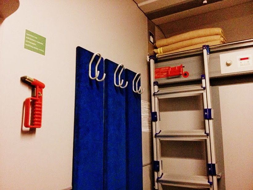 Крючки, дабы развесить свои наряды. И лестница для тех, кому посчастливилось путешествовать на второй и третьей полке.