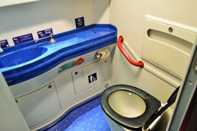 Из минусов нужно упомянуть то, что розетки могут быть сломаны, воды в кранах не будет, а из двух туалетов, расположенных в вагоне, работать будет только один — печалька. :(