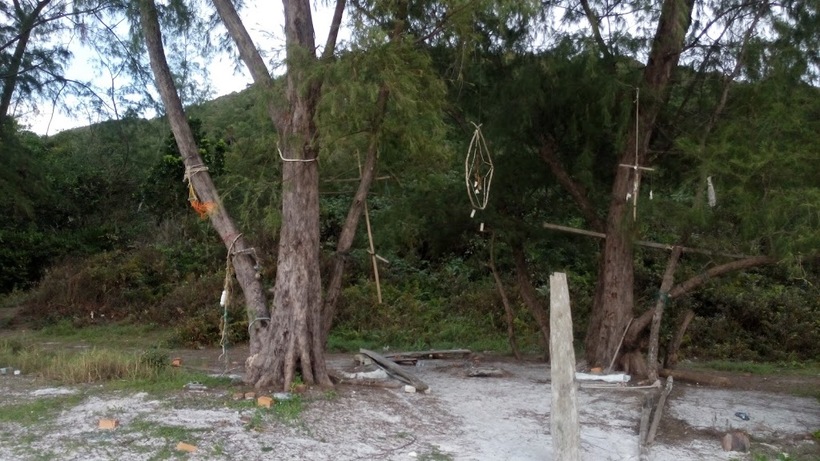 Отказавшись ночевать на полу кафе, куда в полночь вполне могла заглянуть компания местных рыболовов, чтобы выпить виски, мы разбили палатку прямо на берегу океана на месте, куда, вероятно, часто когда-то приходили местные шаманы, ибо там висело много интересных символов, а также dream catcher.