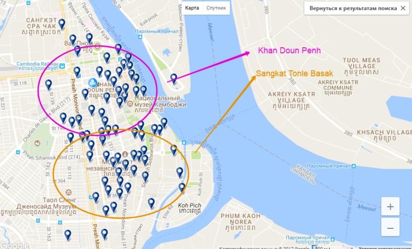 Районы Khan Doun Penh и Sangkat Tonle Basak.