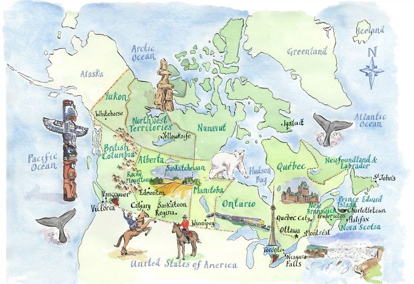 Пересекая страну от Новой Шотландии до Юкона, можно побывать в нескольких климатических зонах с уникальной флорой и фауной. Богатую неоднородную природу канадцы считают едва ли не главной достопримечательностью страны. Местные жители активно проводят свободное время: ходят в горы, катаются на каноэ летом и, конечно же, играют в хоккей зимой.