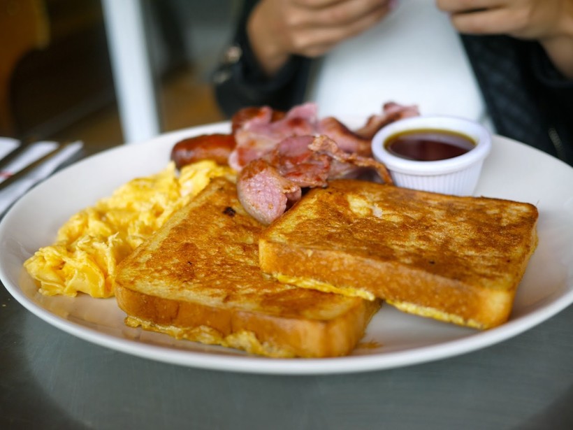 - Канадский бекон, запеченный в соусе из кленового сиропа и омлет — традиционный завтрак.