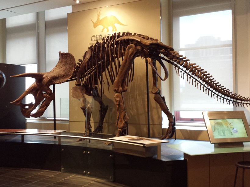 - Talisman Energy Fossil Gallery посвящена динозаврам и ранним млекопитающим. Эта часть экспозиции охватывает период от 85 до 35 миллионов лет назад. Здесь можно увидеть чучела тираннозавра и трицератопсы, известных по фильму «Парк Юрского периода».